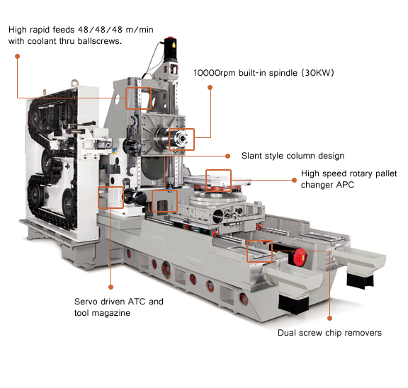 - Высокий КПД устройства автоматической смены паллет ротационного типа и большеразмерных линейных направляющих