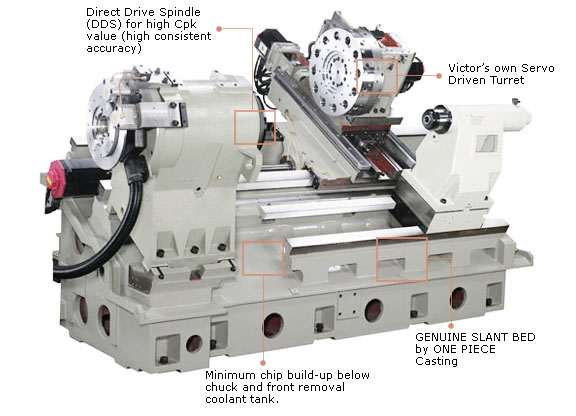- Благодаря более чем 55-летнему опыту производства токарных станков компания Victor усовершенствовала жесткость структуры передней бабки, направляющих, револьверной головки, каретки и даже системы подачи СОЖ и удаления стружки станков серии А, что позволило увеличить их надежность.
