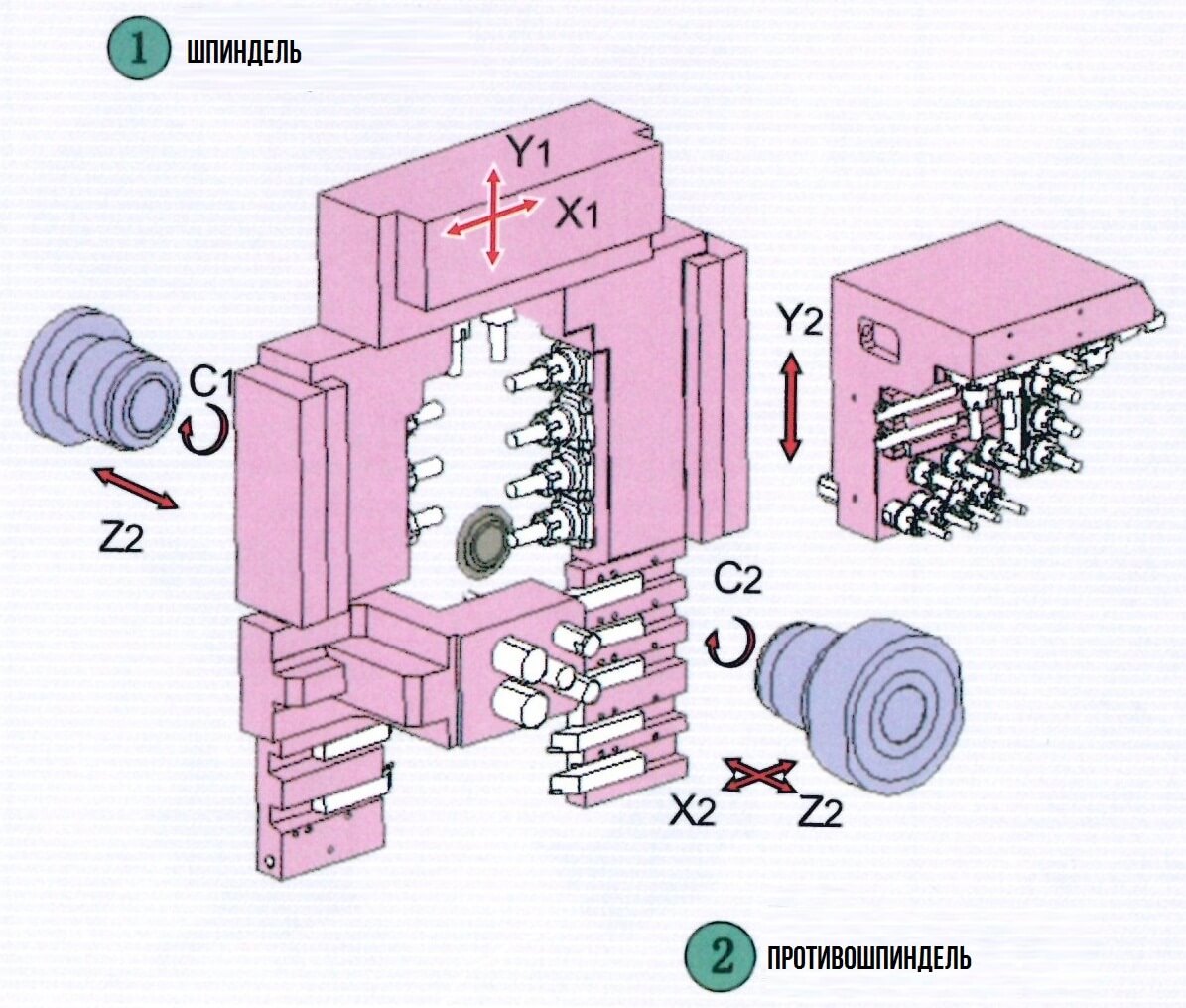 Конструкция этого станка включает в себя жесткую инструментальную платформу закрытого типа, а также инструментальную платформу для противошпинделя, на которые можно установить до 19 инструментов с использованием расширяющих блоков. Это делает его универсальным и многофункциональным оборудованием для различных задач обработки.