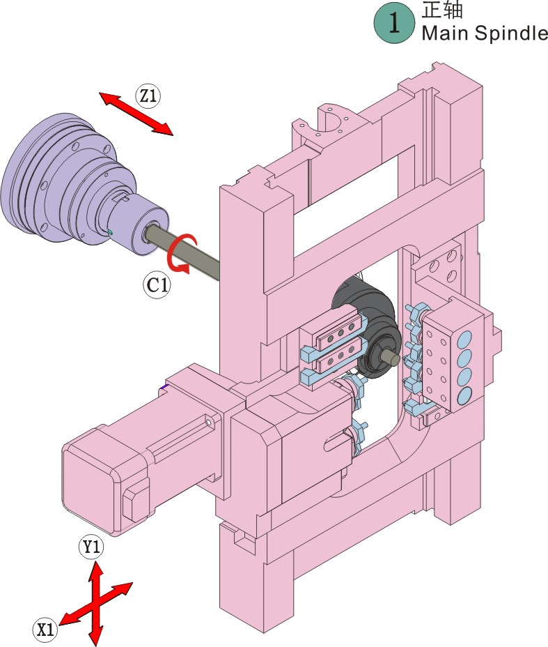 - Главный вал оснащен стандартной индексацией оси C и полным набором функций позиционирования без лишних операций.