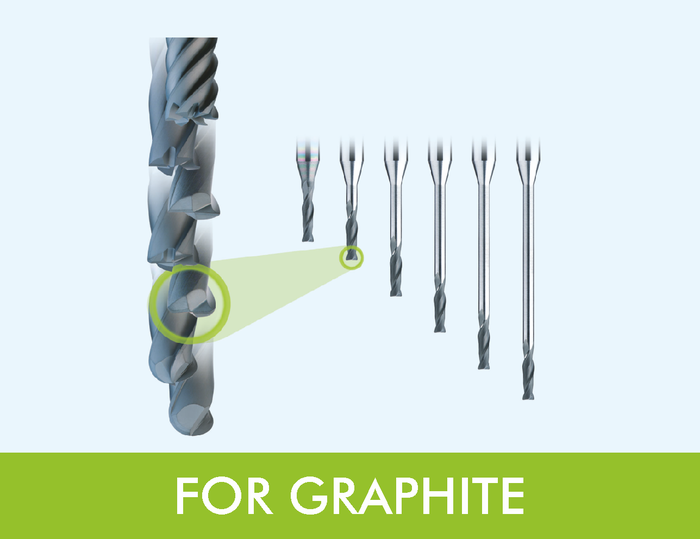 Концевые фрезы FOR GRAPHITE (Для обработки графита). Высокоэффективные концевые фрезы с алмазным CVD покрытием (DIAMOND Coating) предназначены для обработки разнообразных материалов, включая графит, армированный пластик, углепластик, цветные металлы и различные неметаллические материалы. Эти фрезы также доступны с покрытием ALTIN, что делает их идеальным выбором для обработки графита, закаленной и инструментальной стали, а также чугуна.