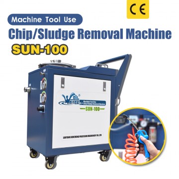 Во время использования станков с ЧПУ различные металлические отходы, порошки, шлам и т. Д. Будут постепенно накапливаться в бассейне смазочно-охлаждающей жидкости. Если его не очищать в течение длительного времени, объем смазочно-охлаждающей жидкости станет меньше, и смазочно-охлаждающая жидкость не будет циклически использоваться во время обработки. Если в насос попадут более крупные примеси, это вызовет засорение трубопровода, что повлияет на охлаждение и смазку деталей во время обработки. В тяжелых случаях насос и детали будут отправлены в слом. SUN-100 Станки используют машину для удаления стружки / шлама, независимо разработанную нашей компанией, предназначенную для очистки резервуаров с водой различных обрабатывающих центров, станков с ЧПУ и инженерного оборудования. Он может быстро и легко очистить металлический мусор, шлам и другие загрязнения в резервуаре для воды, чтобы полностью переработать смазочно-охлаждающую жидкость, экономя время и деньги по сравнению с ручной очисткой.