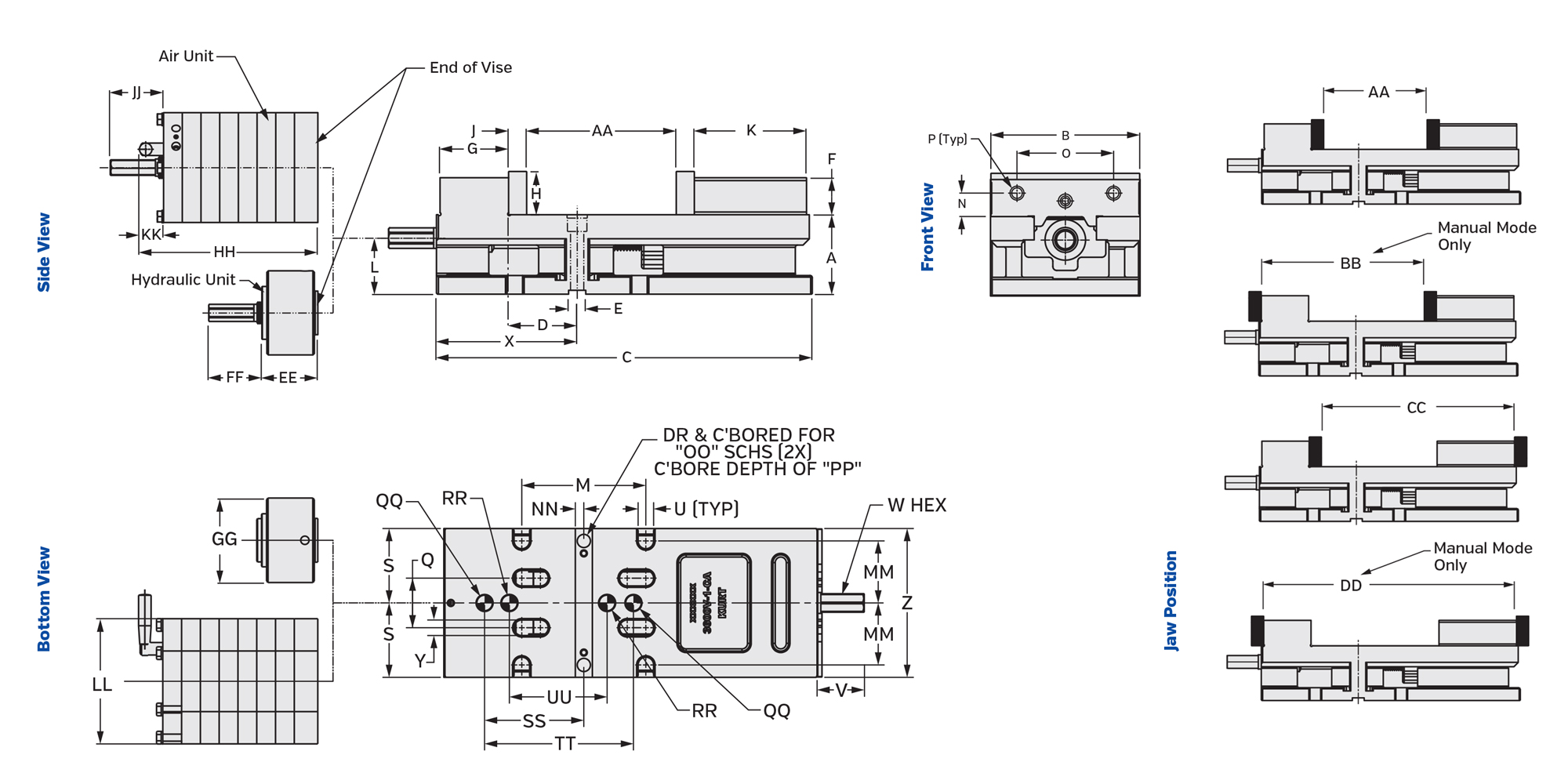 - Соответствует стационарной челюсти шпоночному пазу, включая высоту корпуса ±0,001″.