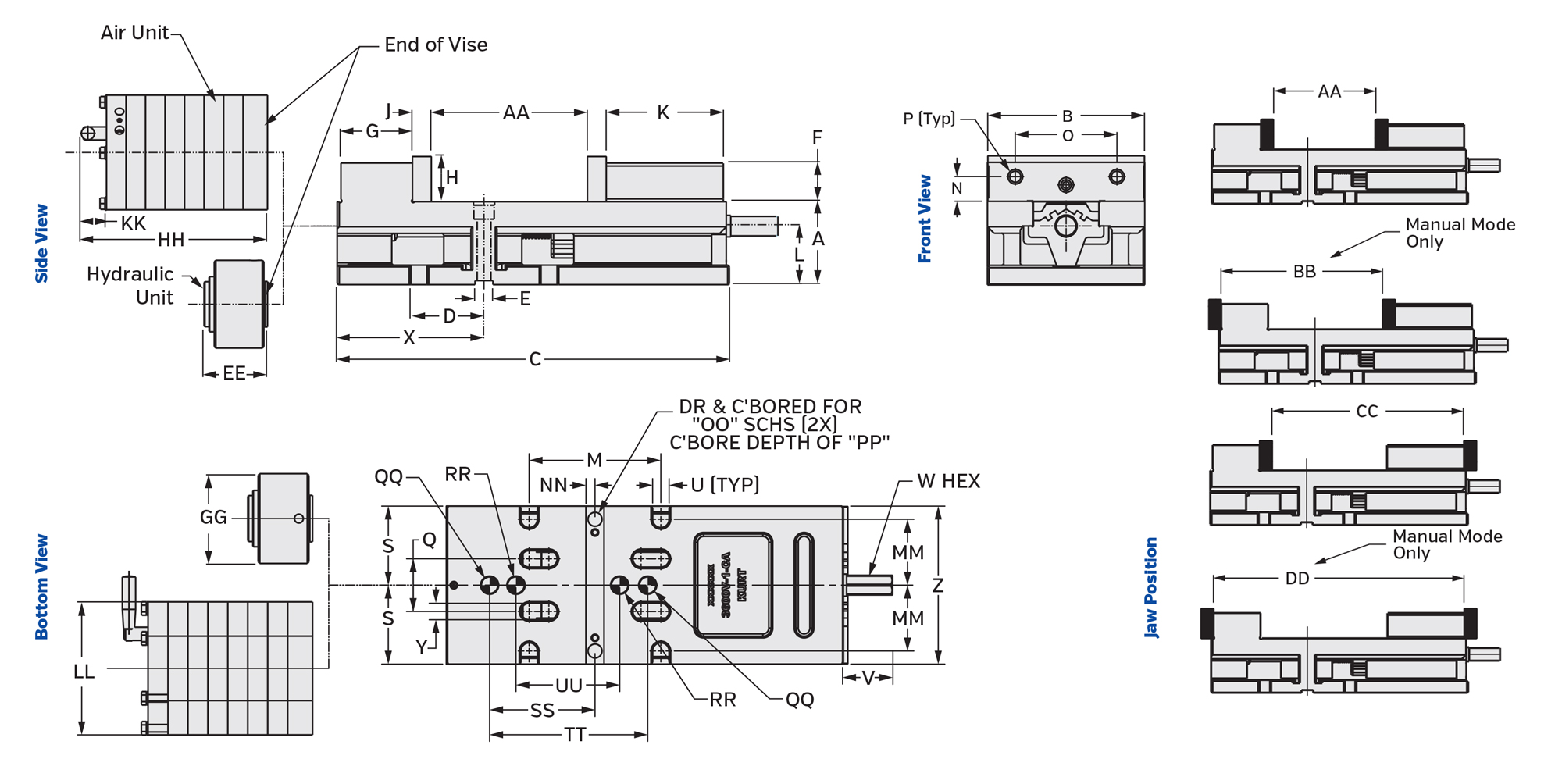 - Соответствие стационарной губки шпоночному пазу, включая высоту корпуса ±0,001″.