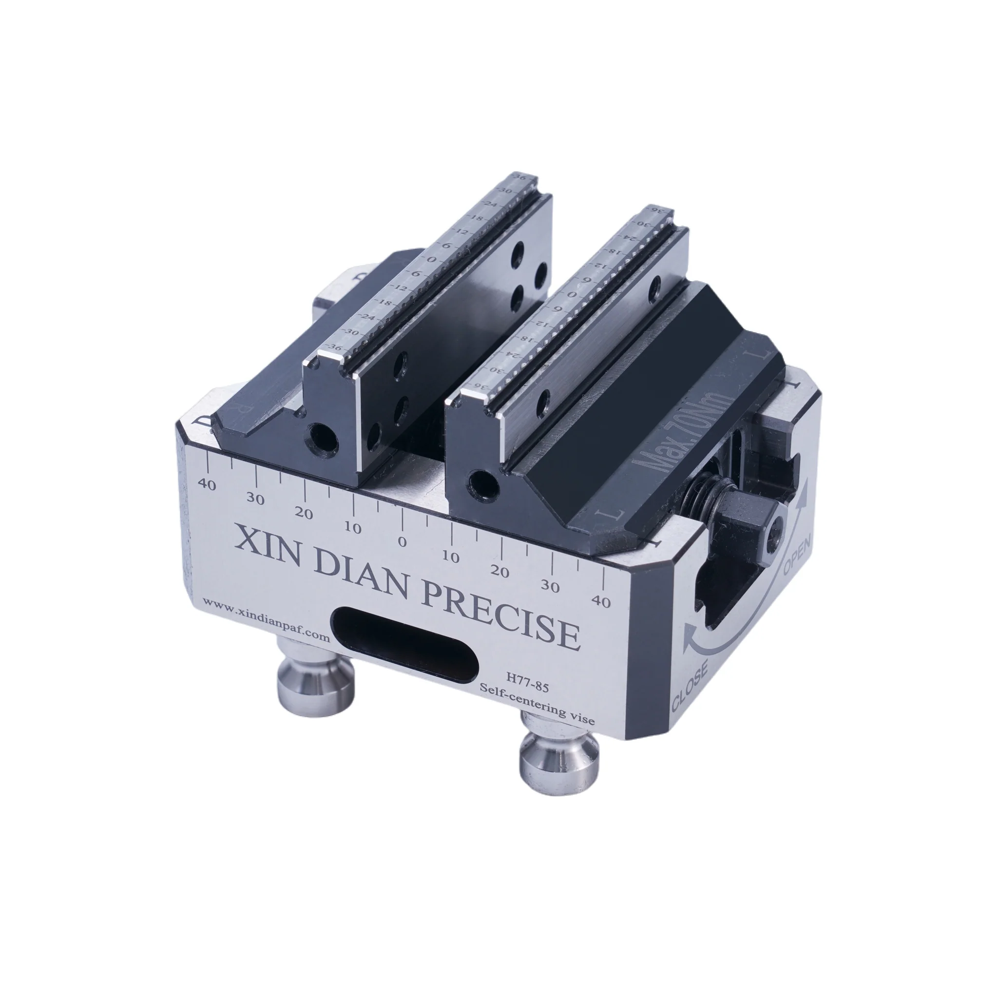 Тиски прецизионно отшлифованы во всех направлениях и хорошо работают с точки зрения параллельности и перпендикулярности. Повторяемая точность позиционирования достигает 0,02 мм, что обеспечивает надежную гарантию обработки, гарантируя точность и последовательность каждой операции позиционирования. Вы можете выбрать между зубчатыми губками или формованными мягкими губками для удовлетворения различных потребностей в обработке. Наши тиски изготовлены из легированной стали. После поверхностной обработки, такой как термическая обработка, твердость может достигать HRC58-62°. Это позволяет с легкостью обрабатывать твердые материалы, такие как сталь.