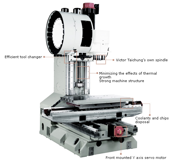 - Устройство автоматической смены инструмента с двойной поворотной рукой осуществляет непрерывную смену инструмента лучше, чем устройство смены дискового типа, в то же время смена инструмента происходит быстрее - лишь за 3.5 секунды с оснасткой BT-40 или CT-40.